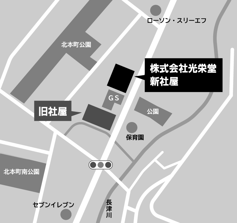 株式会社光栄堂は、業務拡大及び生産性向上を図り、本社を下記住所に移転することとなりました。