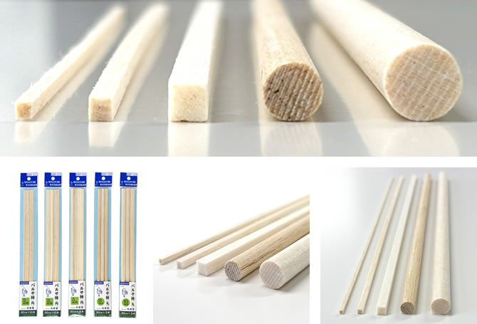 バルサ棒![]() 軽量で軟らかな木材です。南米エクアドル、東南アジアで採取されたものを使用しております。 軟らかな木質なので、非常に加工しやすく、模型製作や造形・デザインへの使用に適しております。 ※木目は他の木材と比較して少し粗めなので、強度を必要とする作品への使用にはあまり適しません。 角棒